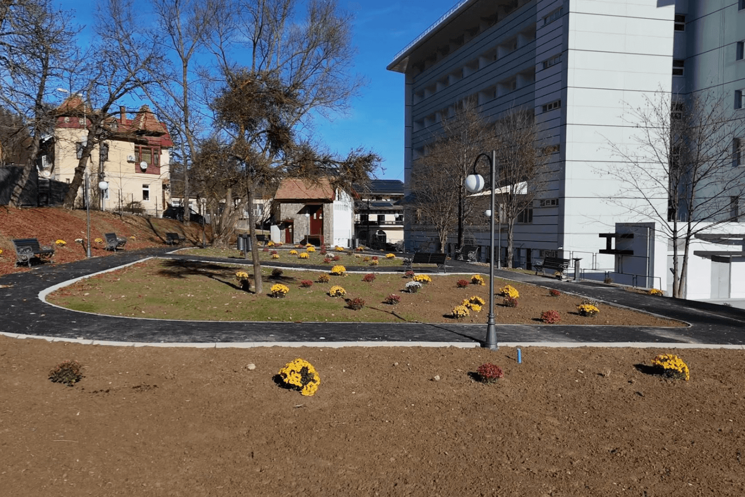 Parcul nostru privat se întinde ca un colț de natură liniștit, chiar în spatele centrului rezidențial. Aleile sale umbrite invită la plimbări relaxante, în timp ce aerul curat de munte aduce o senzație de prospețime și energie.