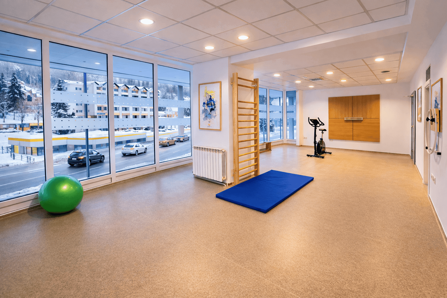 Amenajată într-un cadru luminos și primitor, sala oferă un ambient plăcut, liniștit și sigur, ideal pentru menținerea unei vieți active în ritm propriu.